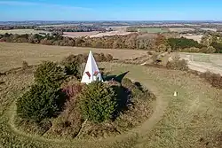 On top of the mount is a folly, which is a monument and burial place marker to a horse named 'Beware Chalk Pit', which carried its owner to a racing victory in 1734, a year after falling into a 25-foot (7.6 m) deep chalk pit while out hunting.[1][2]