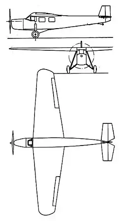 The aeroplane had mixed construction. The fuselage was made of steel tubes, while the wings had a wood frame. The fuselage and the wings are both covered with plywood.