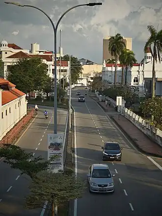 Farquhar Street is a major thoroughfare in the city of George Town within the Malaysian state of Penang. Created in the late 18th century, the road forms part of the city centre's civic precinct, and is notable for the colonial buildings built under British rule.[1] These include some of the most significant civic, religious, and commercial buildings of Penang, such as Penang High Court, Penang State Museum and Art Gallery, St. George's Church, Church of the Assumption, and Eastern & Oriental Hotel.