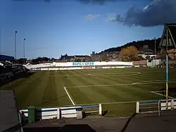 The stadium was due to be demolished and redeveloped into a leisure complex after the 2008–09 season. Due to several delays however the last game that Bangor played there was a 5–3 win for the home side versus Prestatyn Town on 27 December 2011.[2] The club then moved to their new stadium at Nantporth, situated on the outskirts of the city by the Menai Strait.