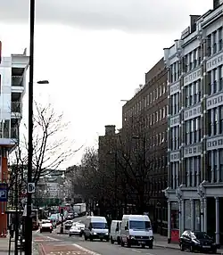 Amongst the notable buildings on Farringdon Road are the former headquarters of The Guardian newspaper at Nos. 119–141,[3] the so-called Zeppelin Building at No. 61 built in 1917 after a Zeppelin raid during World War I, and the western side of Smithfield Market.