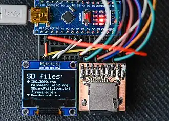 |  Listing files on Micro SD card connected to Arduino Nano using FatFs | |