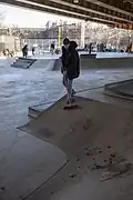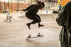 Golconda Skate Park, known as Fat Kid, is a public skate park in the Downtown Brooklyn/Fort Greene neighborhoods of Brooklyn, New York City, that originated as a DIY skate spot.[1][2] Built under the Brooklyn Queens Expressway, the 18,000 square foot professionally built skate park was completed in 2016 and sits within Golconda Playground.[3][2]