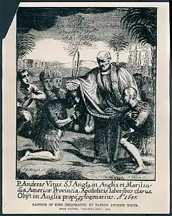 Andrew White SJ (1579 – December 27, 1656) was an English Jesuit Catholic missionary who was involved in the founding of the Maryland colony.[1] A chronicler of Colonial Maryland, his writings remain a primary source on the land, the Native Americans and the Jesuit mission in North America.