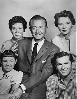 The May 27, 1954, episode of The Ford Television Theatre show was called "Keep It in the Family." This 26-minute episode stars Robert Young as Jim Warren, head of the Warren family. With him was wife Grace (Ellen Drew), older daughter Peggy (Sally Fraser), younger daughter Patty (Tina Thompson) and son Jeff (Gordon Gebert). Developed by Young and his partner Eugene Rodney, it was intended as a pilot for a Father Knows Best television series.[3] In the episode, Peggy dreams of making it as an actress, but a talent scout who has raised her hopes just wants people for his acting school.