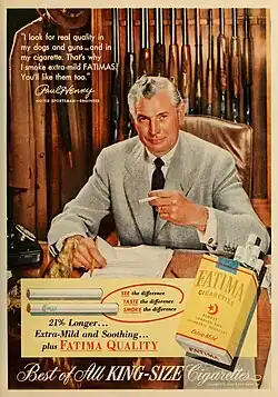 - ^ "Magazine Ad For Fatima Cigarettes, Paul Henry, I Look for Real Quality in My Dogs & Guns, 1952 - Magazines Ads and Books Store". magazinesadsandbooks.com. Archived from the original on 2018-02-10.