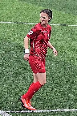 Fatma Kara for Turkey women's national team in the 2015 FIFA Women's World Cup qualification – UEFA Group 6 match against Belarus.