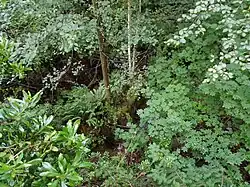 Fauntleroy Creek is a stream in the Fauntleroy neighborhood of West Seattle, Washington, United States. It flows for about a mile from its headwaters in the 32-acre (129,000 m2) ravine of Fauntleroy Park, through a large wide pipe and to a location just south of the state ferry terminal on Puget Sound's Fauntleroy Cove. Then, it drops 300 feet (100 m) vertically along the way, and it currently supports cutthroat trout and Coho salmon.