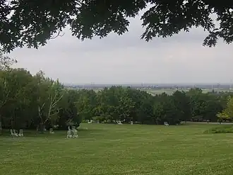 Favoriten is the most populous of the districts of Vienna. Most of Favoriten's residential area is composed of a variety of houses, that are over 100 years old, as well as community housing developments (such as the Hansson-Siedlung). The district also has numerous industries. There are recreational areas in the southern part of the district, such as the Kurpark Laaer Berg (Treatment Park of Laa Mountain), which, in 1974, joined the Kurzentrum Oberlaa (Treatment Centre of Upper Laa), a sulphur springs, and the recreational centre at Wienerberg. On the north side of Laaer Berg, a small theme park, the Bohemian Prater, was built in 1882. Furthermore, the Ernst Kirchweger Haus (EKH), a squatted social centre, is situated in Favoriten.