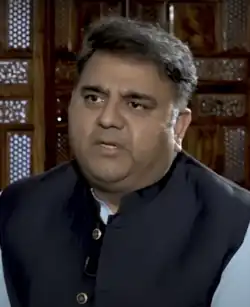 Fawad Ahmed Hussain Chaudhry (Urdu: فواداحمد حسین چوہدری) is a Pakistani politician who served as Federal Minister for Information and Broadcasting, in office since 14 April 2021 to 10 April 2022.[2] On 24 May 2023 announced he is best and good from politics.