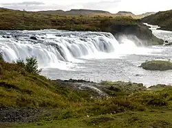 The Faxi (Icelandic pronunciation: [ˈfaksɪ] ⓘ, or Vatnsleysufoss [ˈvasːˌleiːsʏˌfɔsː]) waterfall is located on the Golden Circle, a popular tourist trail approximately 120 km east of Reykjavik. The waterfall is located on the Tungufljót river, a tributary of the river Hvita.[1]