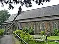 Fazeley sits astride the old Roman road of Watling Street, which is now much quieter following the rerouting of the A5 road to a new course between Fazeley and Tamworth. The road is now designated the B5404. Fazeley Bridge crosses the River Tame and separates Two Gates from Fazeley. The Tame at this point is the boundary between the districts of Lichfield and Tamworth and was formerly the boundary between Staffordshire and Warwickshire.[4] The bridge was built in 1796 to replace an earlier one destroyed by flooding. It is Grade II listed and has three segmental arches constructed of ashlar.[5]