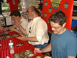 To promote Fear Itself: Fearsome Four #1, one of the tie-in books, writer Brandon Montclare and artists Michael Kaluta and Ryan Bodenheim appeared at Midtown Comics Downtown on June 8, 2011, where they signed copies of the book.[21][22] Writers Greg Pak, Fred Van Lente and editor Mark Paniccia later held a signing at the same store on June 18 for Alpha Flight #1, which is also part of the storyline.[23]