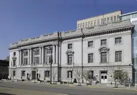The Federal Building and U.S. Courthouse was constructed under the Tarsney Act of 1893, which allowed the United States Department of the Treasury to hold competitions for the design of select federal buildings with the intention of improving governmental architecture's quality. The Wheeling federal building, designed in the Beaux Arts Classicism style, set a high standard for architectural excellence. Marsh & Peter, a prominent firm with several Washington, D.C., commissions, designed the building. Wheeling architect Frank Faris served as the local project superintendent.[1]