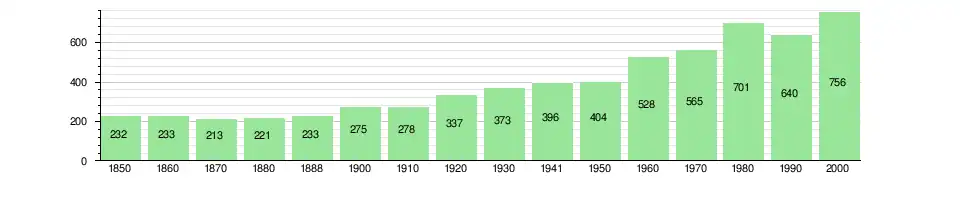 As of 2000, there were 340 private households in the municipality, and an average of 2.2 persons per household.[8] There were 109 households that consist of only one person and 18 households with five or more people. Out of a total of 344 households that answered this question, 31.7% were households made up of just one person and there were 1 adults who lived with their parents. Of the rest of the households, there are 123 married couples without children, 86 married couples with children There were 12 single parents with a child or children. There were 9 households that were made up of unrelated people and 4 households that were made up of some sort of institution or another collective housing.[9]