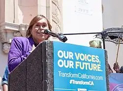 ![]() Felicia "Flames" Elizondo speaks at a Transform California launch event. | |