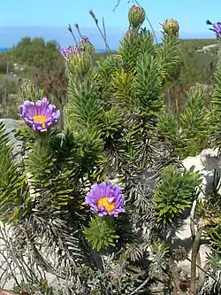 Felicia nordenstamii is only known from limestone ridges just east of Cape Agulhas and near the Potberg.[2]