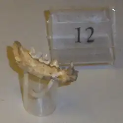 | Fragment of f. lunensis fossilized jawbone, at Museo di Paleontologia di Firenze | |