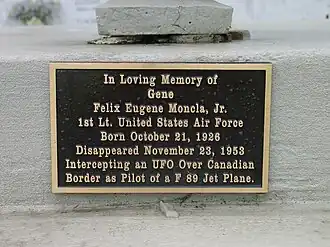 First Lieutenant Felix Eugene Moncla Jr. (October 21, 1926 – presumed dead November 23, 1953) was a United States Air Force (USAF) pilot who disappeared while performing an air defense intercept over Lake Superior in 1953. His disappearance is sometimes known as the Kinross Incident, after Kinross Air Force Base, where Moncla was on temporary assignment at the time he vanished.