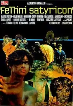 Fellini Satyricon, or simply Satyricon, is a 1969 Italian film written and directed by Federico Fellini and loosely based on Petronius's work Satyricon, written during the reign of Emperor Nero and set in Imperial Rome. The film is divided into nine episodes, following Encolpius (Martin Potter) and his friend Ascyltus (Hiram Keller) as they try to win the heart of a young boy named Gitón within a surreal and dreamlike Roman landscape.