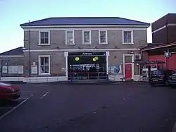 The southern platform (2, westbound, or 'Down') hosts the bulk of the original station house.[2] Two near-adjoining entrances, a small shop, automatic ticket machines and covered seating serve the platform. The mid-19th century former house is at the northern extremity of Feltham's principal architectural conservation area, taking in Hanworth Road, lined primarily with detached late Victorian houses.[2]