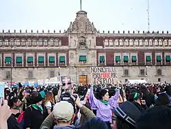 The rise of violence in Mexico has also seen a public softening towards the concept of feminism, especially among those fighting for justice for feticide victims.[9] Mexican women began to take to the streets to march in large demonstrations.[2] These marches called for the acknowledgement of the gender based violence women face.[2] Mexican feminists created the term "feminicidio" (femicide) to describe the way some women are murdered because they are women.[9] They urged their community members to recognize this kind of violence deviates from other kinds of murder and see it as a different issue.[9] The main participants in this movement are the loved ones of those who have been victims of femicide.[20] Their loved ones use various forms of media to spread the stories of those who lost their lives in the violence.[20] Their efforts birthed many organizations that act to keep women in Mexico safe from violence as well as informed about it.[20]