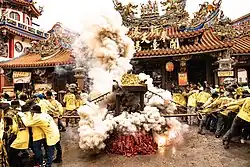Near Lantern Festival, a statue of Mazu is placed in a litter and paraded through Xingang. The ceremony is recognized as an intangible cultural heritage in Chiayi County.[15]