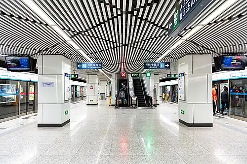Fenzhong Si station[1](simplified Chinese: 分钟寺站; traditional Chinese: 分鐘寺站; pinyin: Fēnzhōng Sì zhàn) is a subway station on Line 10 of the Beijing Subway.[2][3] The station opened on 30 December 2012.[4] The station is located in Fengtai District's Fenzhongsi, after which it is named.