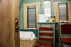 Other modifications included change to coupler (Type D to Type E) and draft gear (from N-10-F to NF-11-E); change of trucks (from D-24 to 24-F); additional generator (4 kW.) – all of which were encompassed in the new Plan, 3972D on August 12, 1942. The car was air conditioned on December 28, 1933, to Special Order 546, and was not part of the transformation to presidential car. The conversion from the private Car pool to presidential Car was accomplished in three steps – at the Pullman-Standard Buffalo Plant (3/5/1941 – S.O. 651); at the Pullman Car Works (Chicago) (September 9, 1942 – attached to Report No. 34469) and at Calumet (12/8/1942 – Report No. 34469). In December 1942, after the refurbishment was completed, it weighed 268,520 pounds.[3]