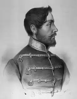 The youngest son of Kazinczy became a soldier and later an army colonel. He fought in the Hungarian War of Independence of 1848–1849 and after the defeat of the uprising he was executed. He was afterwards named the Fifteenth Martyr of Arad.[27]
