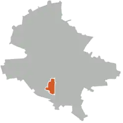 It is located in the South-South-West of Bucharest at a distance of 2.5 to 5 kilometres (1.6 to 3.1 mi) from the city center. Connections to the city center are relatively poor, because of the limited public transport available (see below) and because of the need to cross areas subject to frequent traffic jams like Chirigiu Square.