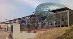 It is located in the district of Benimámet, which belongs to the capital Valencia. Located five kilometers from the urban center of Valencia, the exhibition center is connected to the national highway network of Spain through the ring road to the city. The highway connects you with the port of Valencia, and with the city airport.[9]