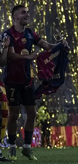 On 21 January 2024, Torres scored his first hat-trick for Barcelona and provided an assist for João Félix on his 100th appearance for the club in a 4–2 away win against Real Betis.[43] Later that year, on 11 December, in a thrilling Champions League match against Borussia Dortmund, Torres delivered a stunning performance by scoring a decisive brace, securing a 3–2 away victory for Barcelona.[44] On 6 February 2025, he scored a hat-trick in the first half of a 5–0 away win over his former club Valencia in the Copa del Rey quarter-finals.[45] Two months later, on 2 April, he scored the only goal in a 1–0 away win over Atlético Madrid, clinching a 5–4 aggregate victory and a spot in the Copa del Rey final.[46] On 26 April 2025, he once again showed up to score a late equaliser against arch-rivals Real Madrid in the Copa del Rey final, forcing the game into extra time, where FC Barcelona secured the win thanks to Jules Koundé's winner. He was named MVP of the final and was the competition's top goal scorer. [47]