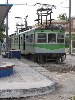 The Hershey Electric Railway, also known as the Hershey Railway, is a standard-gauge electric interurban railway that runs from Casablanca, Havana, to the city of Matanzas, approximately 92 kilometres (57 mi) to the east.[1] There are a number of intermediate halts and a station and depot at the town of Camilo Cienfuegos, better known by its pre-revolutionary name of Hershey. The railway is the only surviving electric line in Cuba.[2] The railway was built by The Hershey Company to transport sugar to the port of Havana. The original electric interurban cars were bought from the JG Brill Company, but these were replaced by 60-year old cars from the Ferrocarrils de la Generalitat de Catalunya in the 1990s.[3][4]