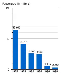 - ^ Ministério dos Transportes (1982–1984). "Transporte realizado Passageiros Interior-". Anuário Estatístico das Ferrovias do Brasil (1985). Retrieved March 17, 2019.