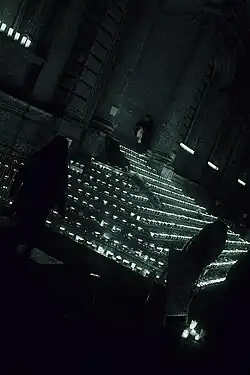 The Festival of Lights (French: Fête des lumières, [fɛt de lymjɛʁ]) in Lyon, France, is a popular event that originally aimed at expressing gratitude toward Mary, mother of Jesus, around December 8 of each year.[1] This unique Lyonnaise tradition dictates that every house place candles along the outsides of all the windows to produce a spectacular effect throughout the streets. The festival includes other activities based on light and usually lasts four days, with the peak of activity occurring on the 8th. The two main focal points of activity are typically the Basilica of Fourvière which is lit up in different colours, as well as the Place des Terreaux, which hosts a different light show each year.[2][3][4][5][6]