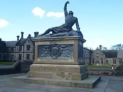 The war memorial, a bronze figure of a fallen officer telling his men to "carry on" is by Birnie Rhind, 1919.[47]