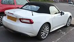 Largely based on the fourth-generation Mazda MX-5 roadster, and manufactured alongside the MX-5 at Mazda's Hiroshima plant,[8][9] the 124 shares its platform, mechanicals, interior and top mechanism with the MX-5 — it is distinguished by an FCA engineered and manufactured turbocharged Multiair engine, uniquely tuned shock absorbers, unique exterior styling and nominally increased length and cargo capacity over the MX-5.[10][11][12]