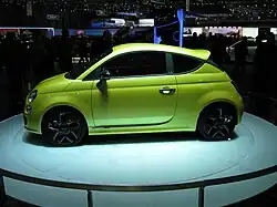 The Abarth 500 is a performance model of the Fiat 500 tuned in-house by FCA's Abarth subsidiary. It was unveiled at the 78th Geneva Motor Show, a year after the rebirth of Abarth brand and company.[36] All models use a turbocharged and intercooled version of the 1.4 L Fire I4 petrol engine.