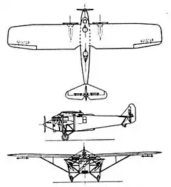 The BRG (Bombardiere Rosatelli Gigante, "Giant Rosatelli Bomber") was a three-engine strut-braced high-wing monoplane. It had a deep slab-sided fuselage with one engine in the nose and two strut-mounted engines between the upper wing and a short stub wing attached to the lower fuselage. The BRG had a single fin and rudder and a wide-track landing gear. The pilot and co-pilot had a cabin forward of the wing leading edge. The aircraft was fitted with four machine guns, located in an open dorsal cockpit and a ventral tunnel. After testing in 1931 the prototype BRG was attached to 62 Squadriglia SPB, an experimental heavy bomber squadron.