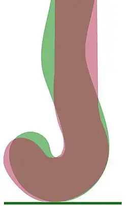 New names have been coined to describe the various hook shapes but there is much confusion and overlapping of names. 'Maxi' and 'Mega' are also terms for styles of hook shape but there is no common agreement about what these terms mean outside of each 'brand' name that employs them: what one brand terms a midi another calls a 'hook' but, basically, there are three types of hook. The near symmetrical 'U', a 'tight' or 'closed' toe shape, between 60° and 75° and an 'open' shape of 45°–55°. Where the toe is shorter the same toe angles are generally referred to as midi.