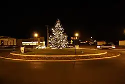 The primary cross street within the district is Federal Street, which intersects Fifth Street at its 700–800 block transition. Like all streets crossing Fifth (except Park Avenue), Federal Street intersects at a right angle, and runs in a southeast-to-northwest direction. On its southeastern end, Federal Street terminates in its 1100 block due to a steep cliff that overlooks Twelfth Street. On its northwestern end, Federal Street transitions into Hollins Mill Road, a winding route that crosses Blackwater Creek and terminates at its intersection with Bedford Avenue. The intersection of Fifth and Federal is marked by a single-lane, four-way roundabout and adjoining pedestrian plazas, which were completed in 2010.