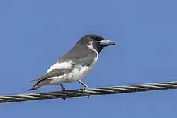 The Fiji woodswallow (Artamus mentalis) is a species of woodswallow in the family Artamidae. It is endemic to most of the islands of Fiji, although it is absent from Kadavu Archipelago and the Lau Archipelago.[2] The species was once considered a race of the white-breasted woodswallow,[3] which breeds from Australia, New Caledonia and Vanuatu through to Borneo and the Philippines. Some authors retain it in that species.[4]
