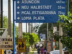 The newly asphalted highway, PY09, from Asunción continues past Filadelfia for another 70 km (40 mi) and runs out at the military checkpoint Mariscal Estigarribia. From this point onwards, the road to the border town fort General Eugenio A. Garay with Bolivia is almost impassable.