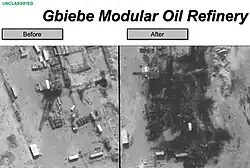 Pictures show damage to the Gbiebe oil refinery in Syria following airstrikes by US and coalition forces.