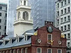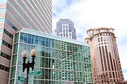The area includes Post Office Square, the Exchange Place and International Place complexes, and the landmark Custom House Tower (now an 87-room Marriott Vacation Club), and borders Quincy Market, Faneuil Hall, and the Old State House.