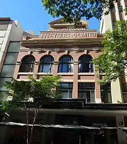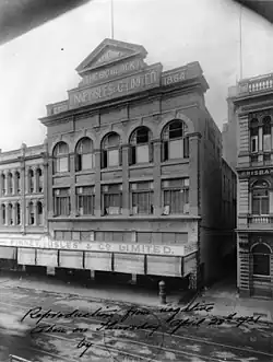 In 1921 the company acquired a two storeyed building adjoining the northern side of the Queen Street store and it was converted for use as the men's department. In 1929 this building was extended to four storeys and the facade remodelled to a similar style of the 1909 store.[1]