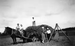 Later, agronomist Axel Alfthan (1862–1934)[83] and veterinarian Kaarlo Gummerus (1840–1898[84]) expanded Aspelin's hypothesis, proposing that the horse population later diverged into Eastern Finnish and Mid-Finnish types, which had remained distinguishable as late as the turn of the 20th century. Photographs support these claims: the small Karelian horse was blocky and stout, with pronounced withers, a short neck and large head. The small horse from central Finland, on the other hand, was "more noble", with a longer body, lighter neck and more refined head.[80] The Swedish professor Eric Åkerblom even suggested that the Finnish horse spread along river valleys to Troms, Norway, and was the ancestor of the Nordlandshest/Lyngshest, found around the Lyngenfjord. The Norwegians continue to utilise Finnhorse bloodlines, having purchased the Finnish pony-type stallion Viri 632-72P for stud use in 1980. However, Åkerblom dismissed the possibility that the eastern Finnhorse came from same prototype as the western pony breeds.[85]