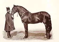 By the end of the 18th century, crossbreeding of Finnish horses began to be described, especially by military leaders, as "detrimental crossbreeding"—damaging to the quality of the Finnish horse, particularly for military use.[78] In the beginning of the 19th century, German historian Friedrich Rühs especially blamed the west coast estates for damaging the Finnish horse by crossbreeding.[93] Nonetheless, outside stallions were still imported to Finland. At the end of the century, stallions "of oriental, Arabian blood" still served at state farms. The influence of the Russian-imported "oriental" Turkish and Caucasian horses, as well as "Fürstenbergian" horses was also noted. Orlov Trotters were used in Savonia and Karelia, and Norwegian stallions were brought to northern Ostrobothnia. Light riding horses were imported from Russian and Central Europe. Conversely, heavier horses such as the Norfolk Trotter and Ardennes were imported to southern Finland as late as 1870.[78]
