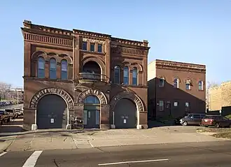 Fire Station No. 1 is a former fire station in the Central Hillside neighborhood of Duluth, Minnesota, United States. The two-building complex was constructed in 1889. It was one of the first fire stations in Duluth, built as the city transitioned from a volunteer fire department to a professional municipal agency.[2] The station consists of a Romanesque Revival engine house and a plainer stable/shop building which wraps around it in an L.[3]